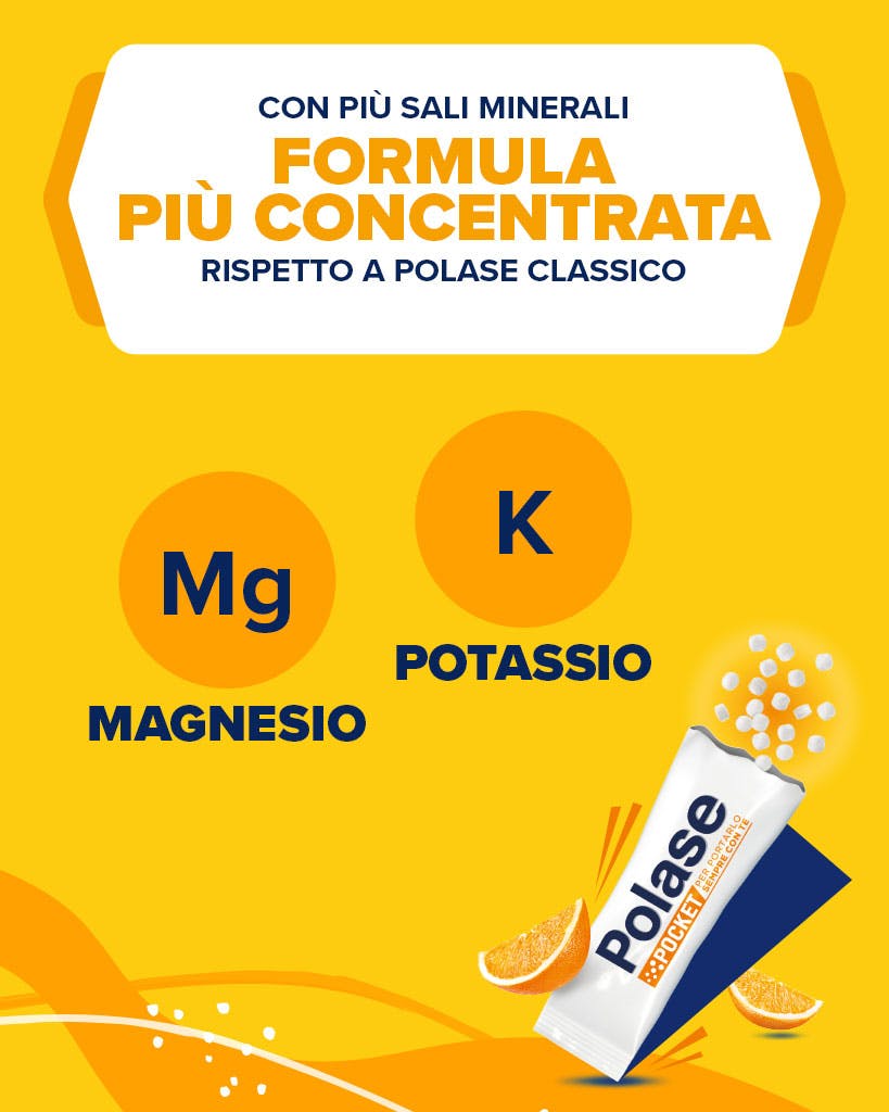 Da sempre Polase contiene sali organici di Potassio e Magnesio, che grazie alla loro elevata solubilità sono sali altamente assimilabili dall'organismo.
